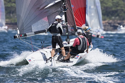 Hamish Jarrett and his Miss Pibb crew are leading the charge for the Yngling NSW Championship at this event and could not have been more pleased with their day. “What a beautiful day on the Harbour,” he said, “it was a bit choppy with all the boats in the regatta, but the building nor’ easter turned into the perfect breeze - 18-19 knots.