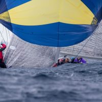 Evie is triple Olympian Karen Gojnich’s boat which Ruth McCance skippered to win the Championship last year. This time, Gojnich is back on the helm with McCance crewing.